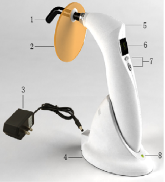 Denjoy® Dental Curing Light Wireless KL501 LED Lamp is composed mainly of high power LED, micro-control electric circuit, Li-on battery, charging base, light guide, Circular eye-protector and power adapter. With adjustable curing time and three curing modes available, it is applied to ray radiation principle to solidify the light-sensitive resin by shooting at it in a short time, used for polymerization of light cured materials by dental professionals.