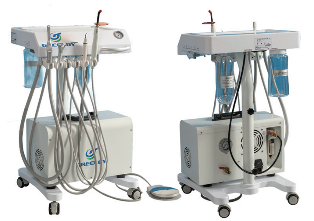 The portable compressor GA-P 300, it is silent, oil free motor, metal cabinet with handle for free movement, with built-in stainless steel tank, also air flow outlet with pre-filter & cooling system, which would keep clean air flow supply.