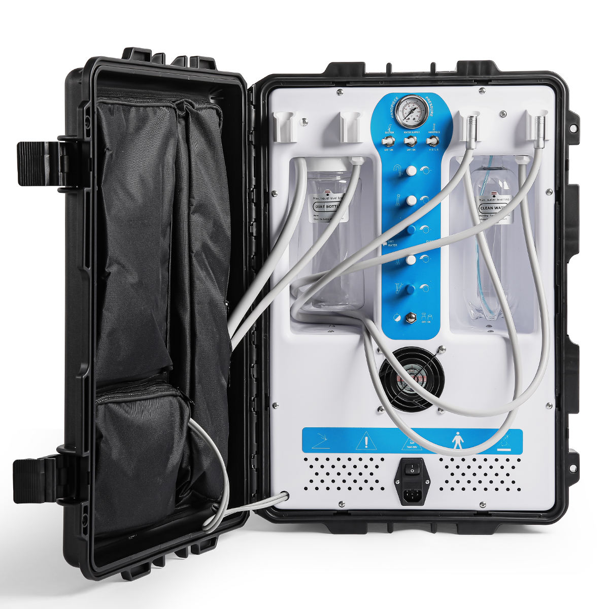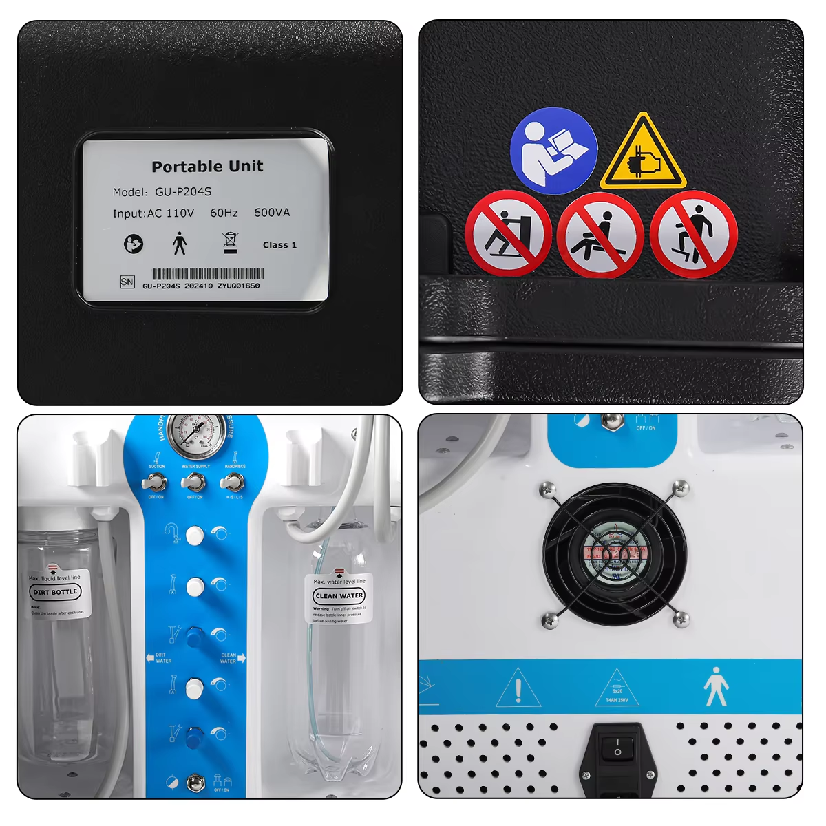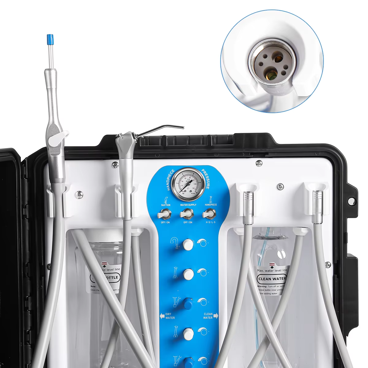 4.COMPLETE FUNCTION: The unit consists of related operation system inside the dental treatment unit, such as air system, water system, suction