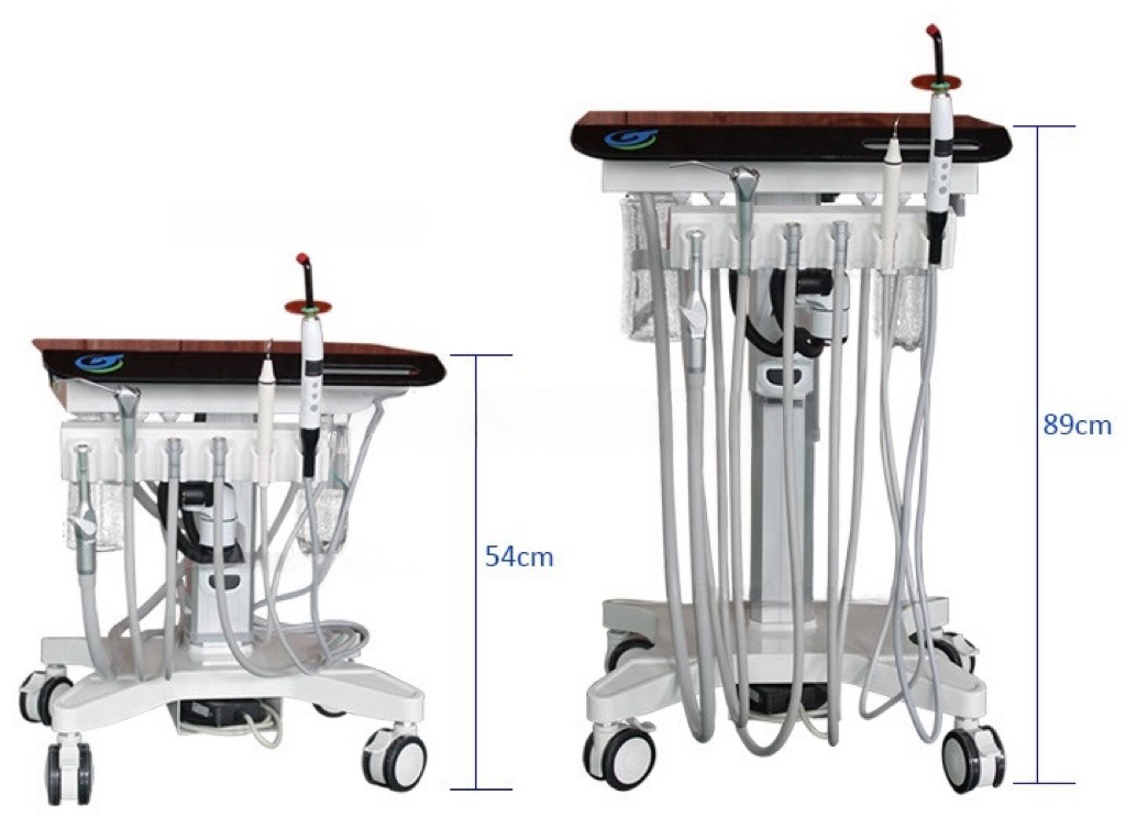 1* Mobile Dental Cart Treatment Unit with Electric Motor Lift+ Curing Light + Scaler GU-P302S