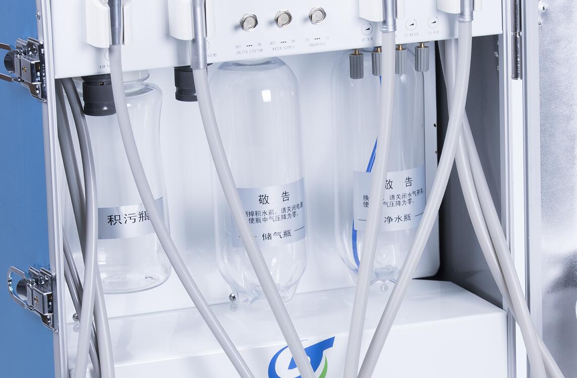 4.COMPLETE FUNCTION: The unit consists of related operation system inside the dental treatment unit, such as air system, water system, suction and drainage.